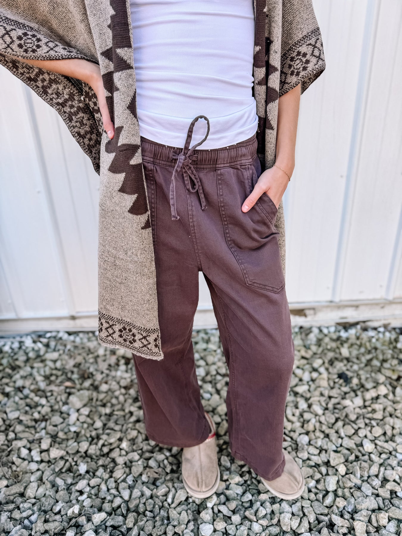 Everyone is absolutely loving these wide leg Easel pants! They fit true to size with an adjustable waistband.