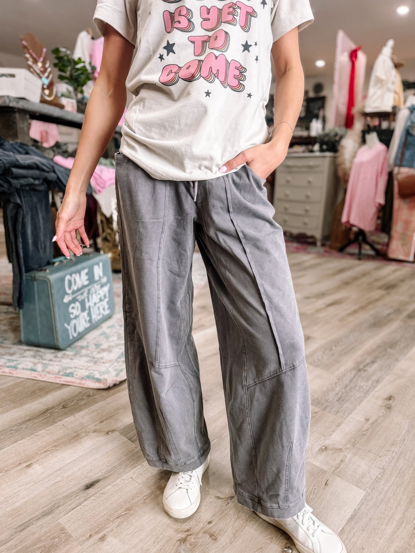 We’re obsessed with these elevated barrel sweatpants. Dress them up or dress them down!