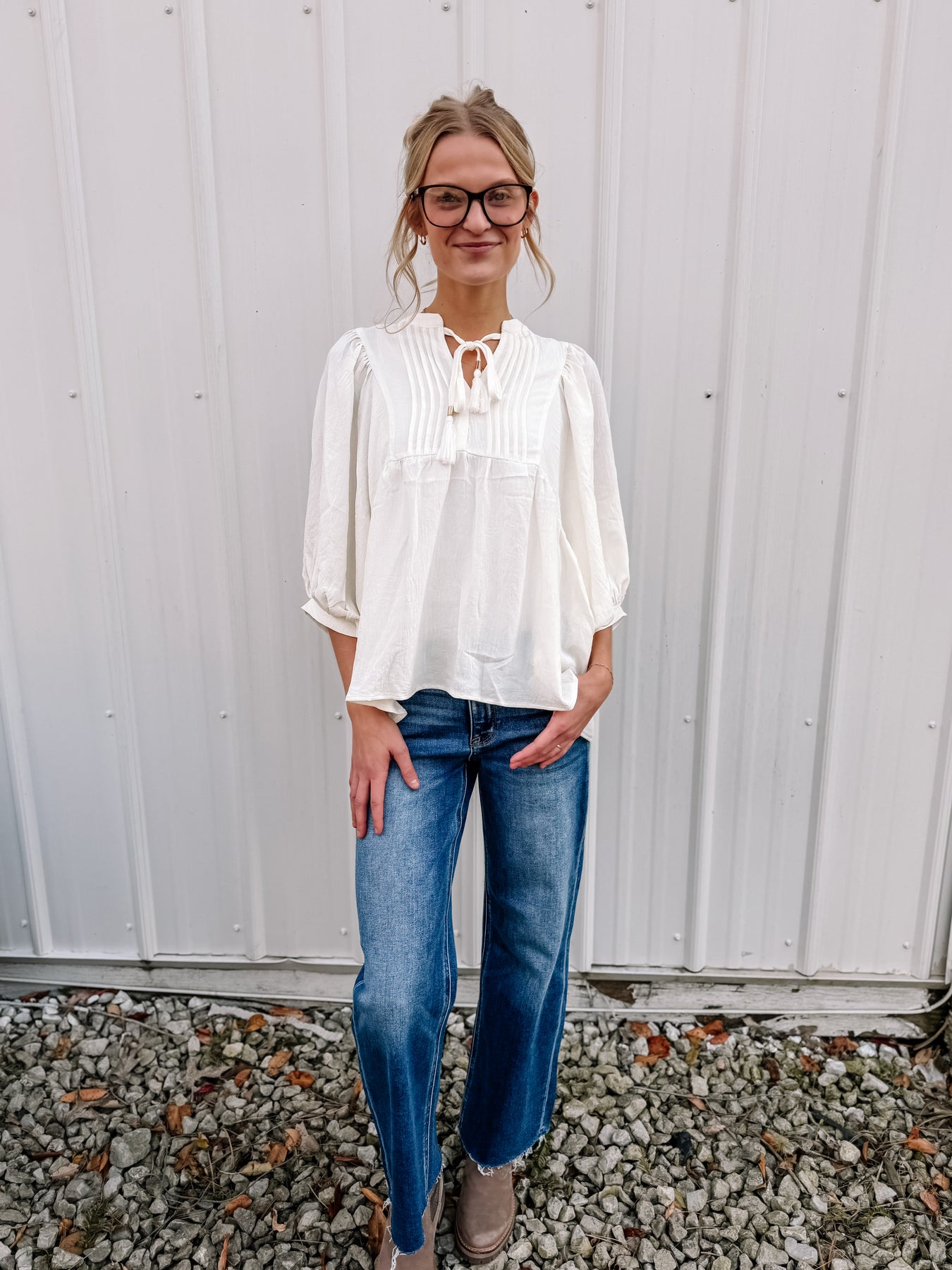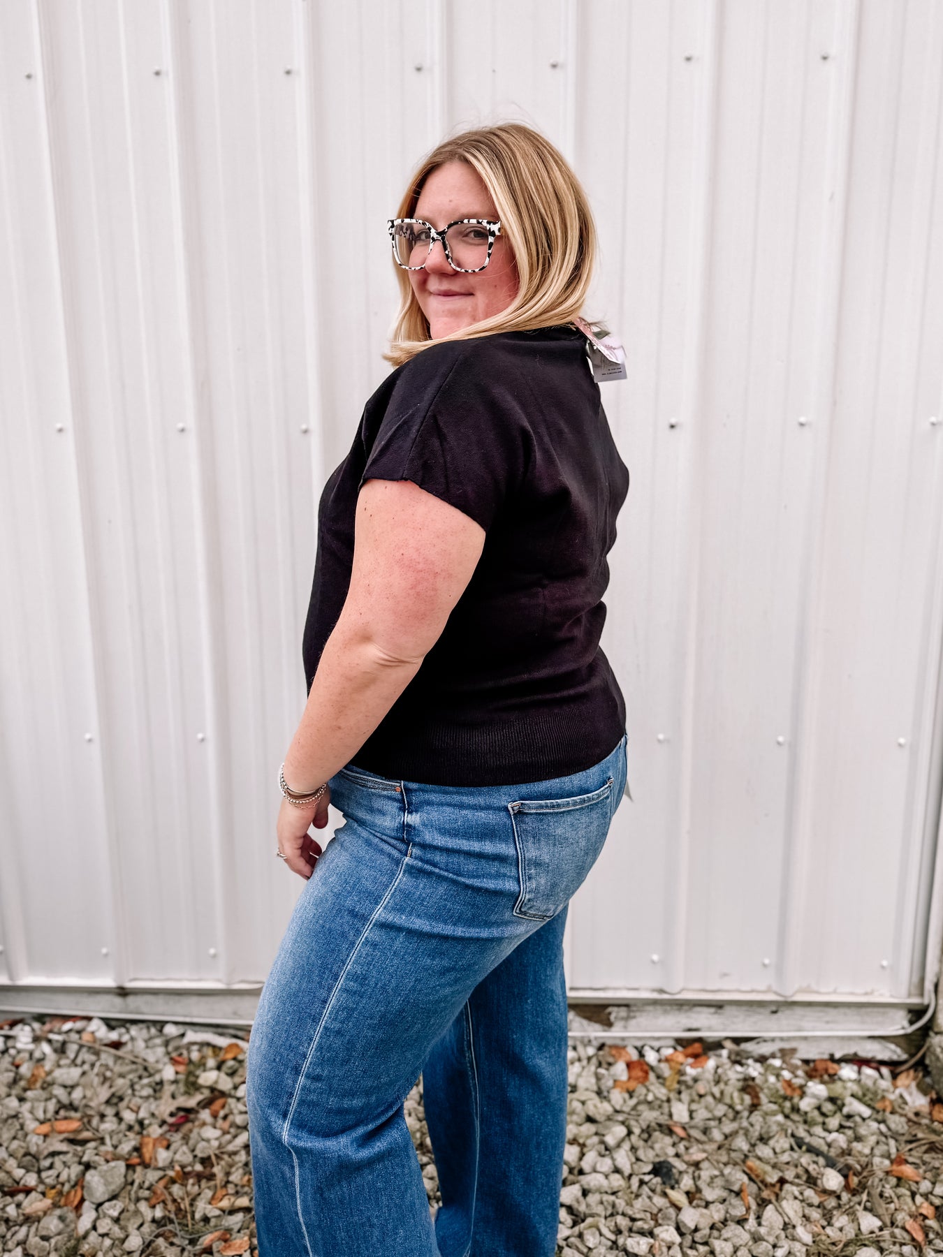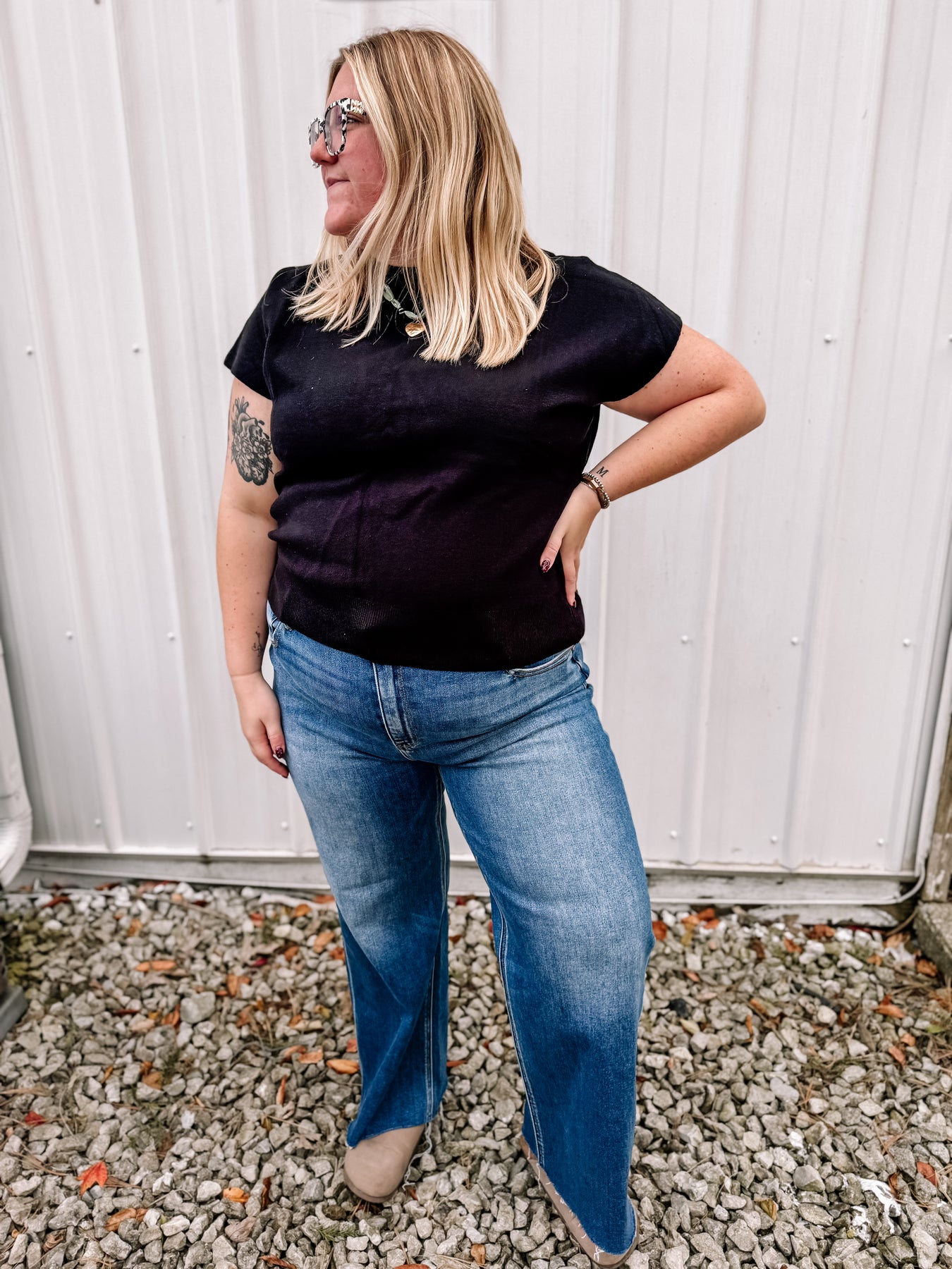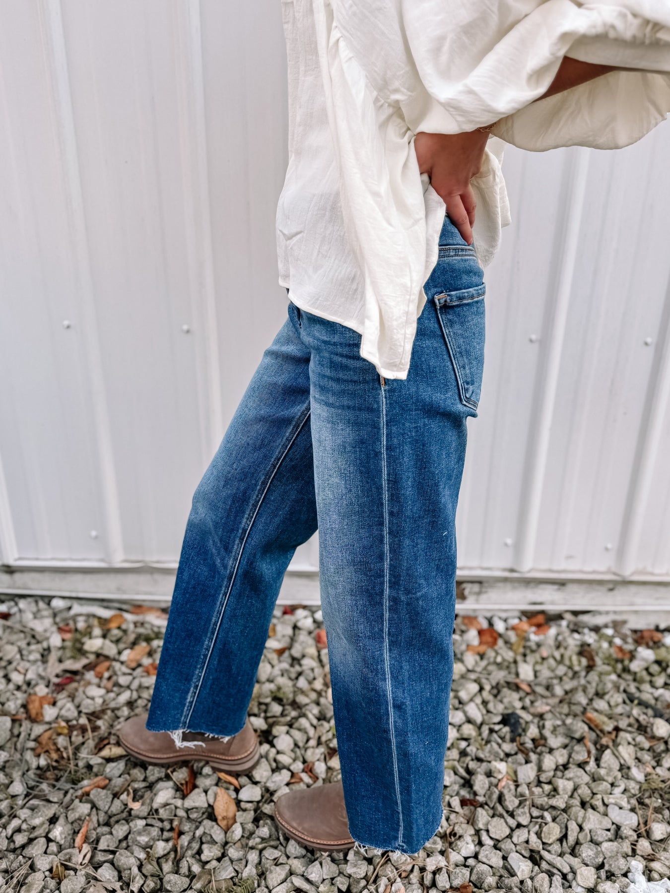 Super stretchy and comfortable RISEN wide leg style jeans. Alyvia and I both are in our true size. They are very stretchy but we definitely recommend getting