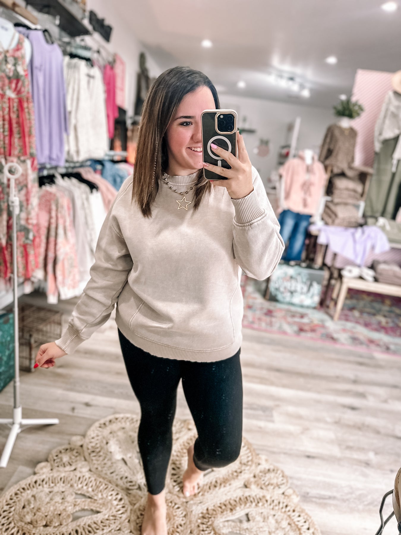 The perfect basic mocha sweatshirt from Zenana! Super comfortable and lightweight. Alyvia is in the small and Kendall is in the 3xl. Fits true to size!