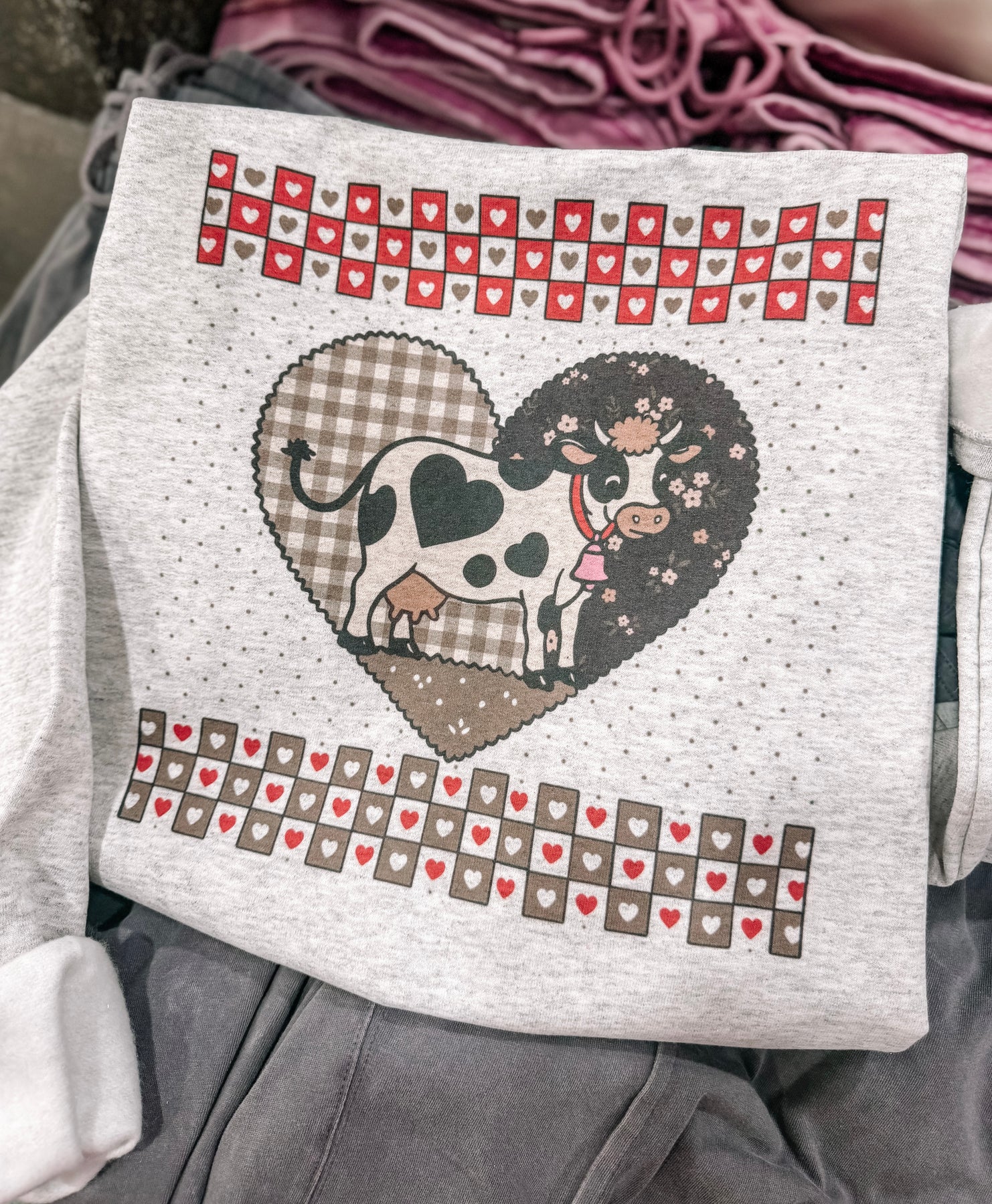 Gingham Cow | Tshirt or Crewneck