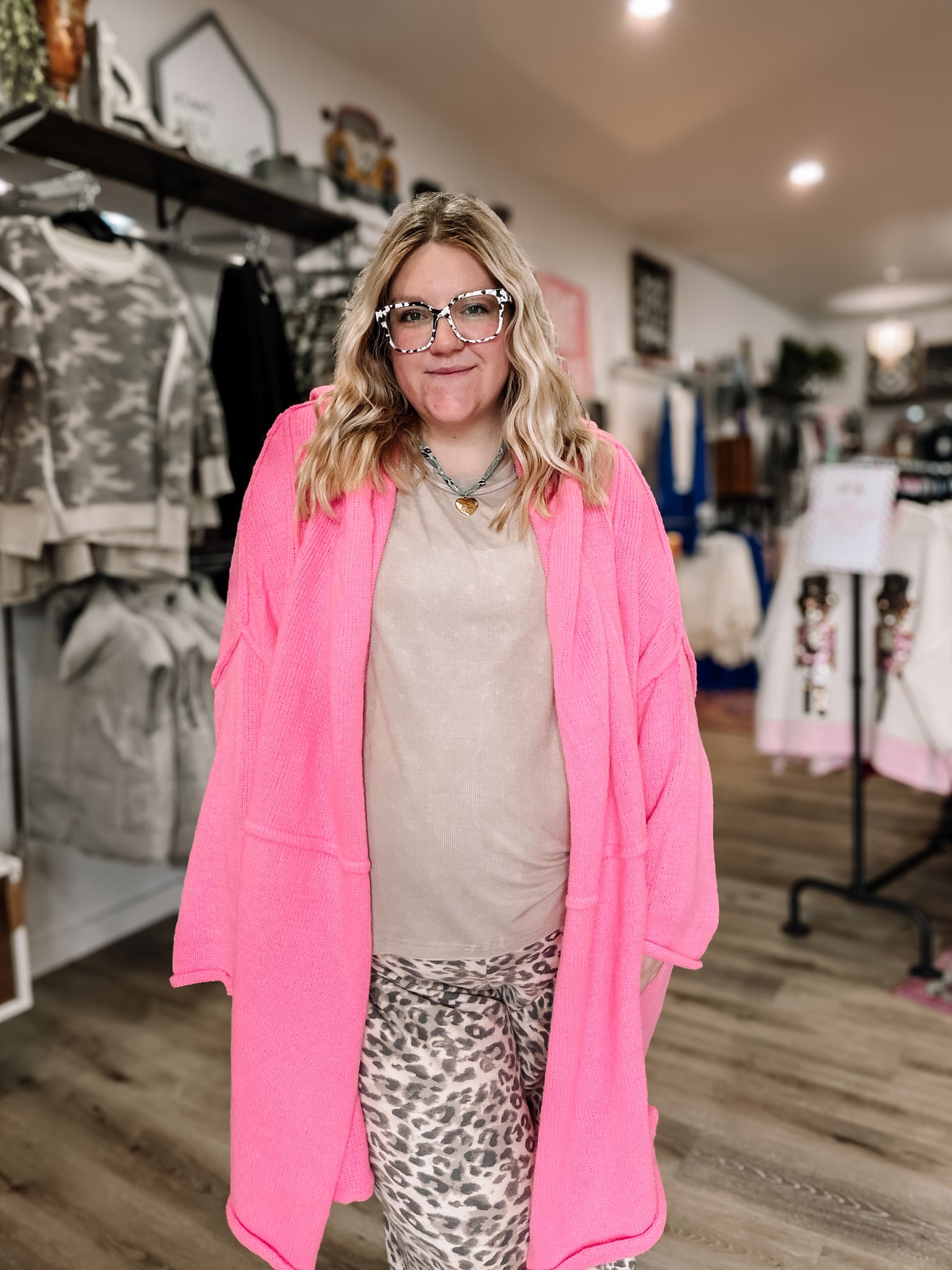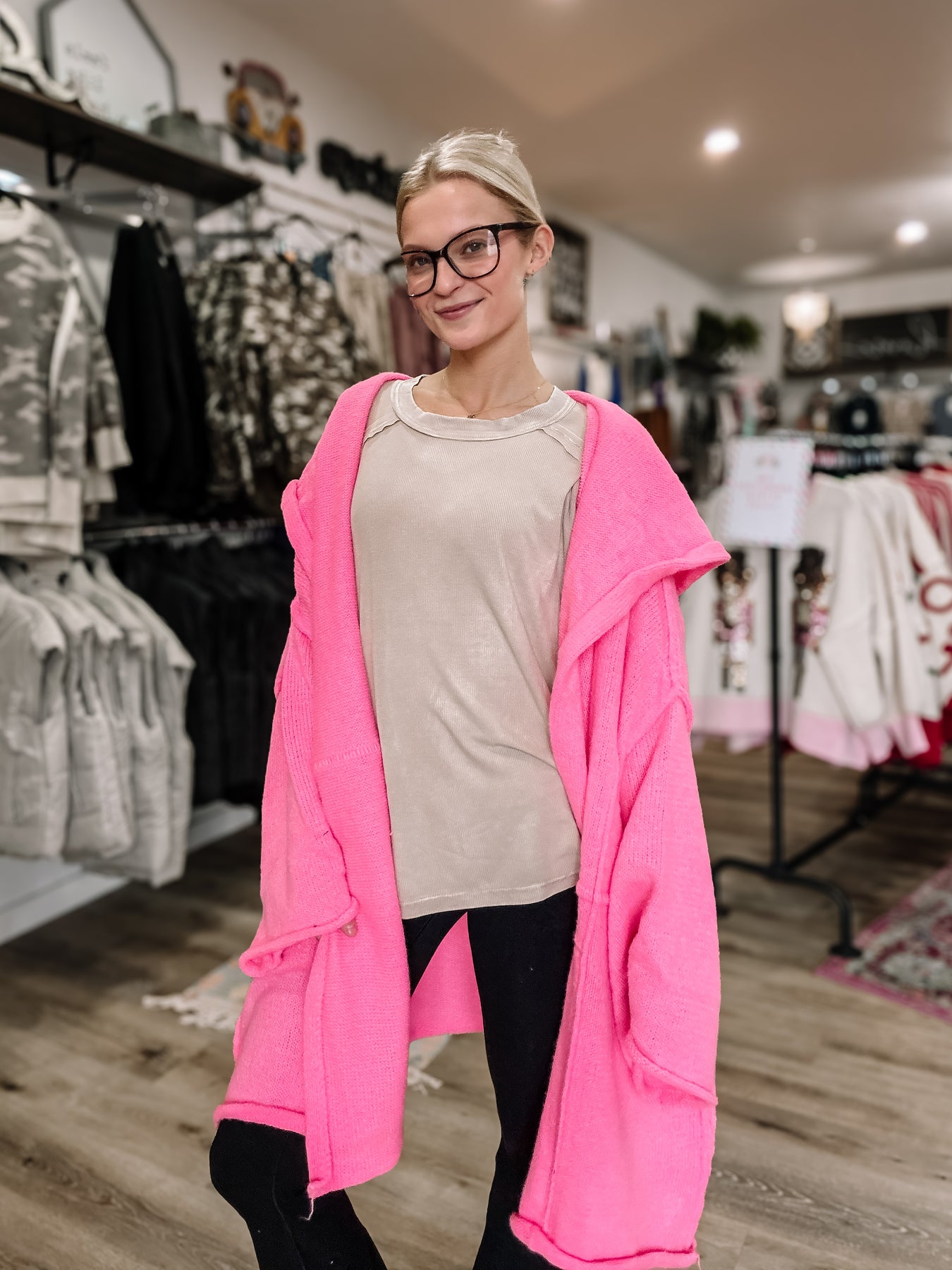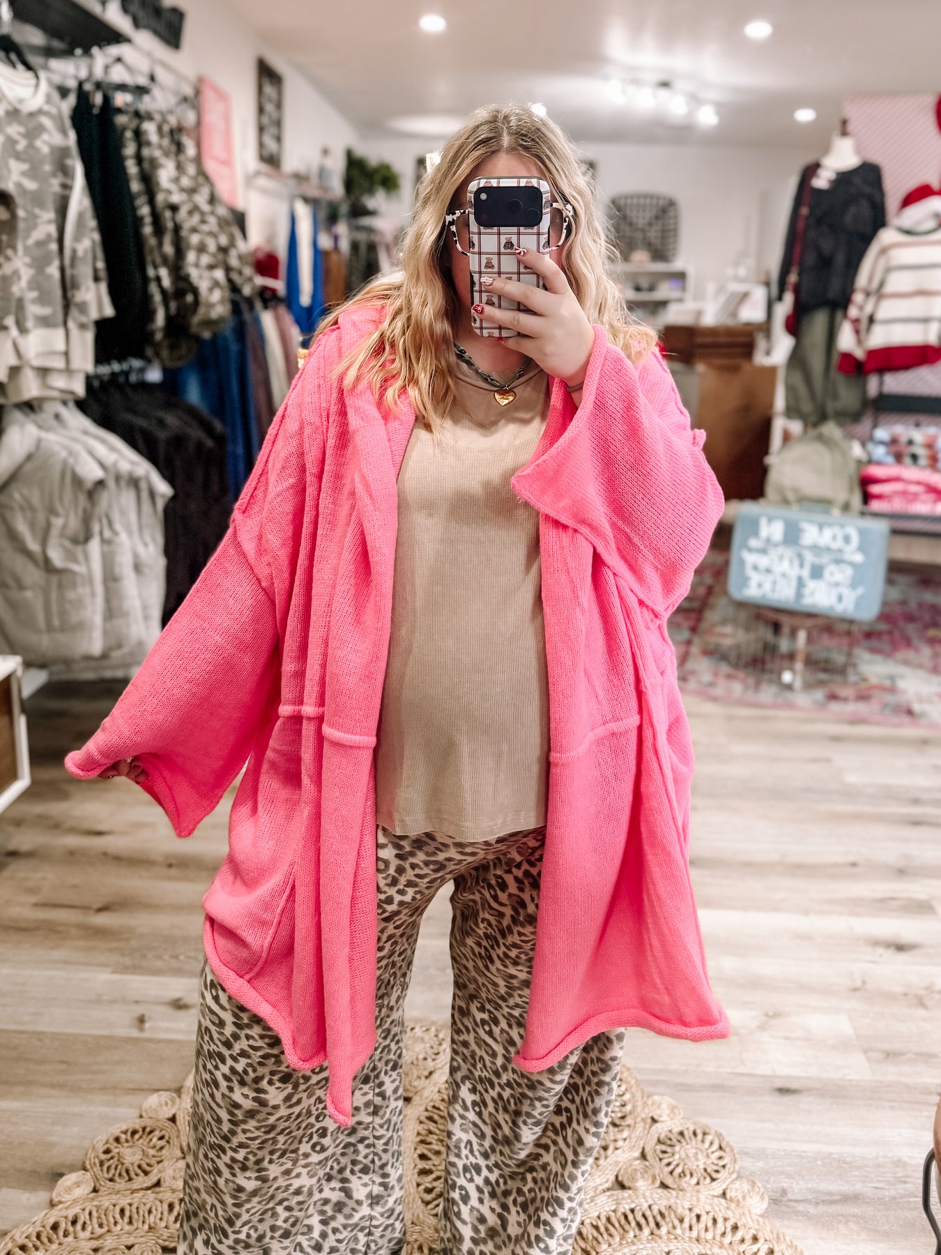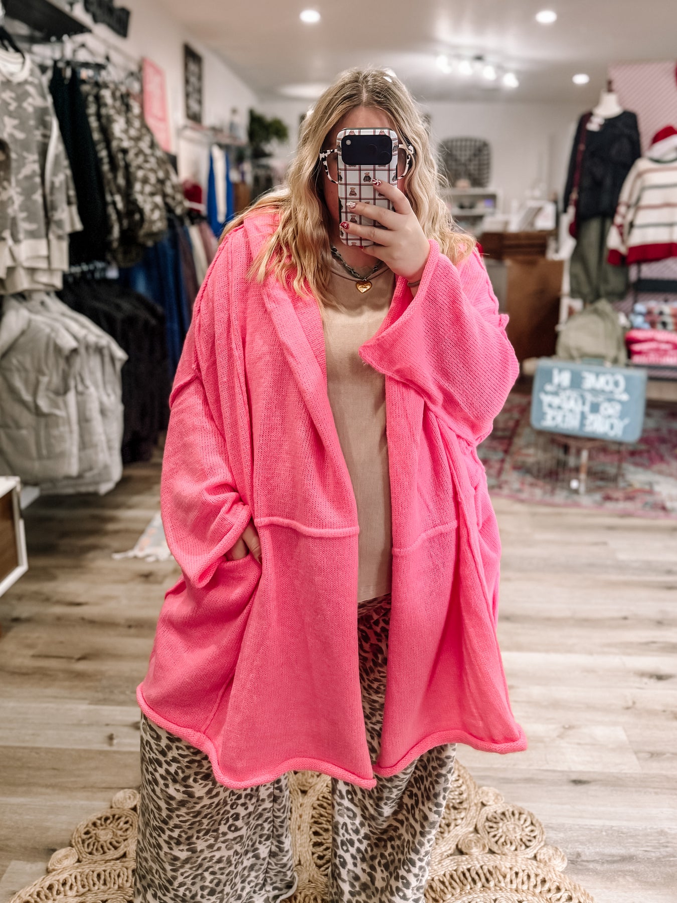 This cardigan is amazing!!!! It is so comfortable and oversized. Kendall and Alyvia are both in the 1xl. It does have pockets and a hood.